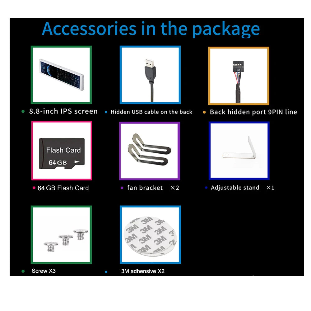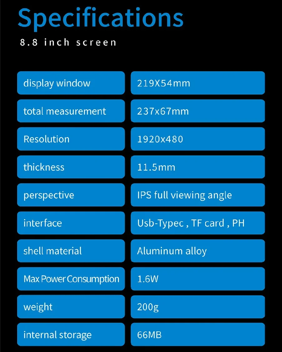 8.8 Inch Secondary Screen IPS 1920X480 Pixel USB Type-C LCD Monitor PC Case CPU GPU RAM Dislpay Computer Monitoring Free AIDA64