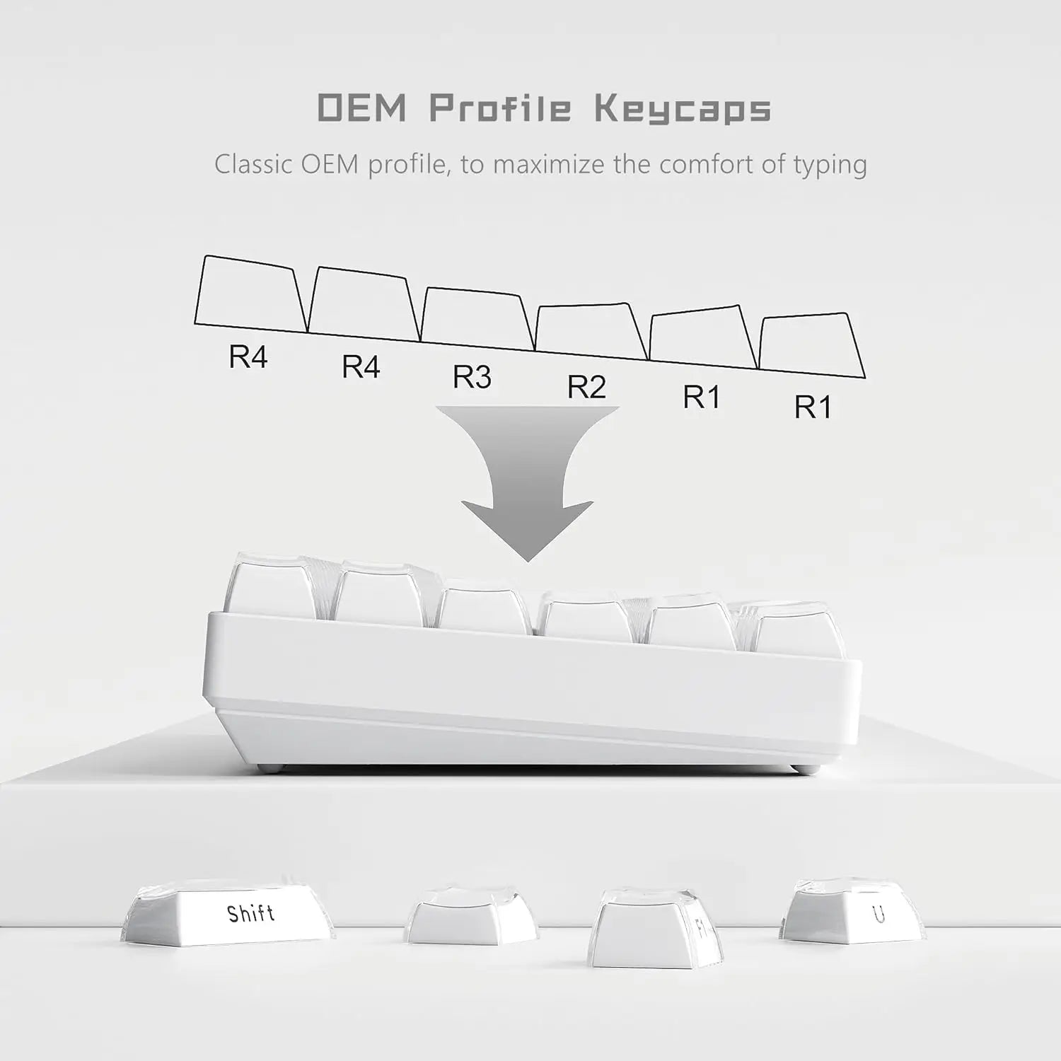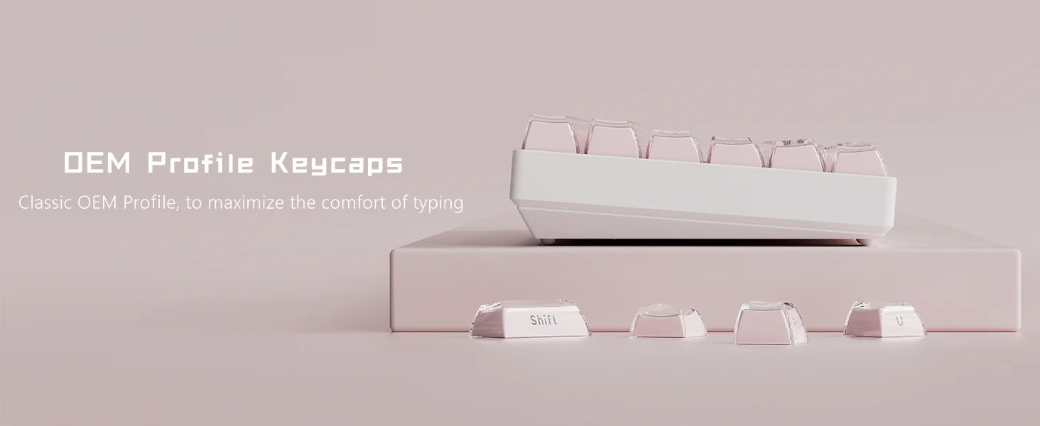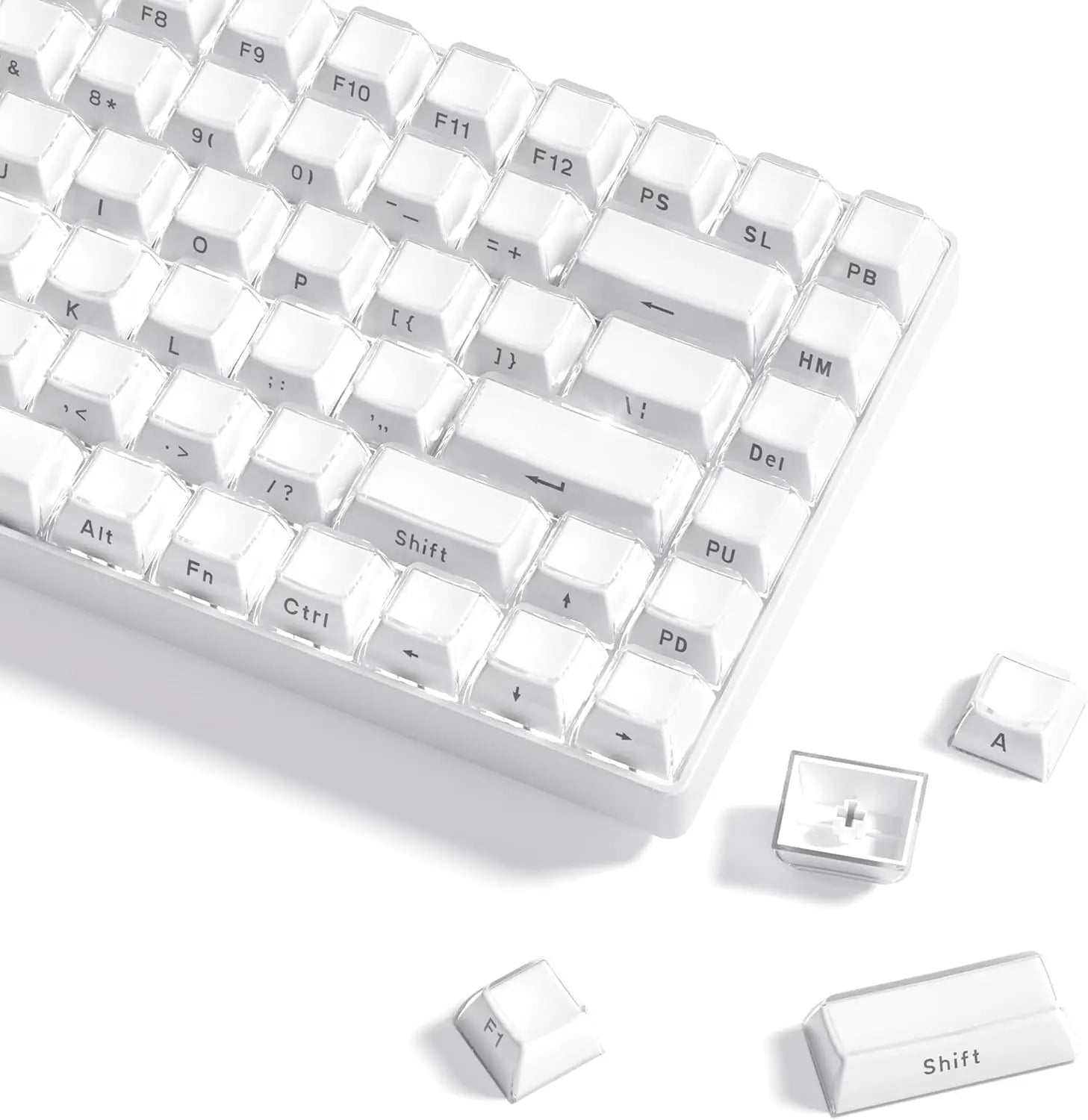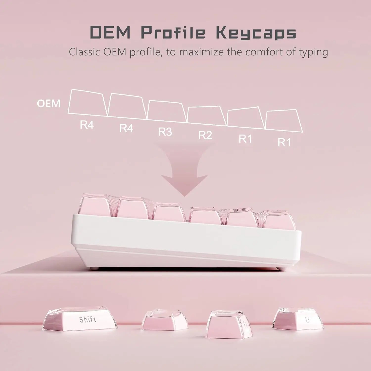 Crystal jelly keycaps, side-engraved 113 keys, suitable for 61/68/84/87/98/100-key Cherry Gateron MX mechanical keyboards, pink.